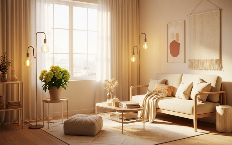 - 조명: 따뜻한 톤의 스탠드 조명으로 아늑하게.