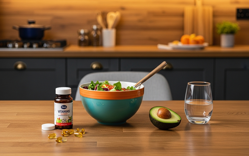 - 음식 조합: 지용성 영양제(D, A, E, K)는 지방 함유 식품(견과류, 아보카도)과 함께.
